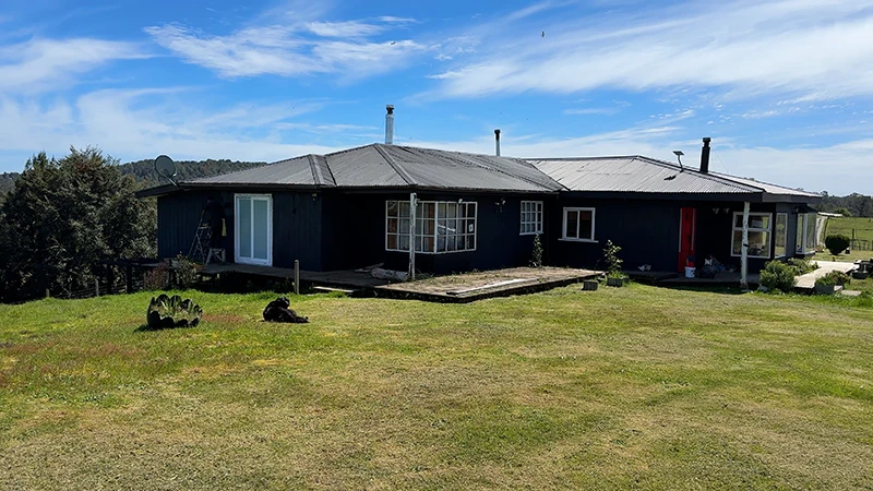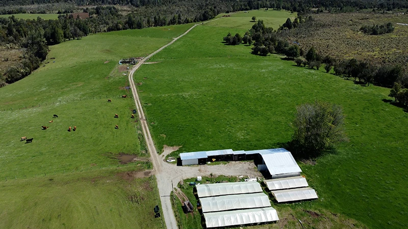 Campo en Estaquilla, Los Muermos. Posee casa con recepción municipal, invernadero con sistema de riego, galpón y bodega. Dispone de luz eléctrica, agua APR y noria propia. Exenta de contribuciones y buen acceso.