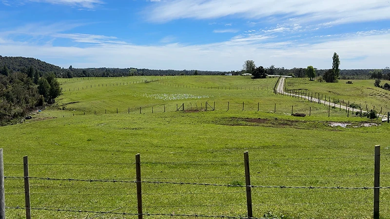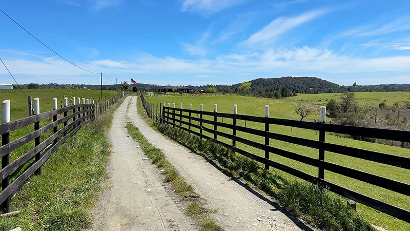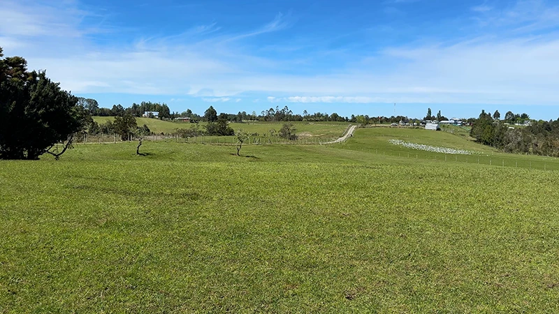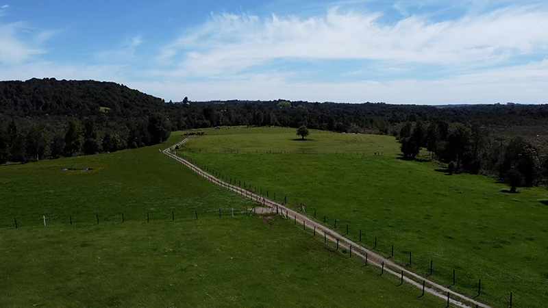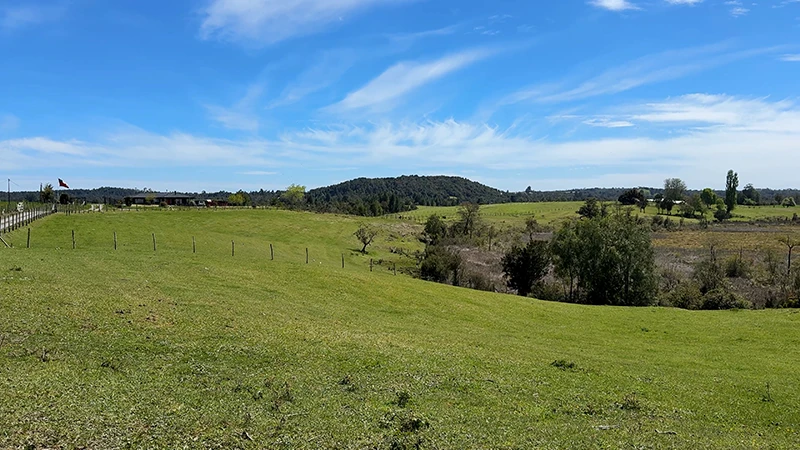 Campo en Paillaco, en las cercanías del Lago Ranco. 85% de fértiles praderas, 13 hectáreas planas, 29 onduladas y en altura con vistas a cordón cordillerano. 781 metros de estero continuo y acceso por servidumbre.
